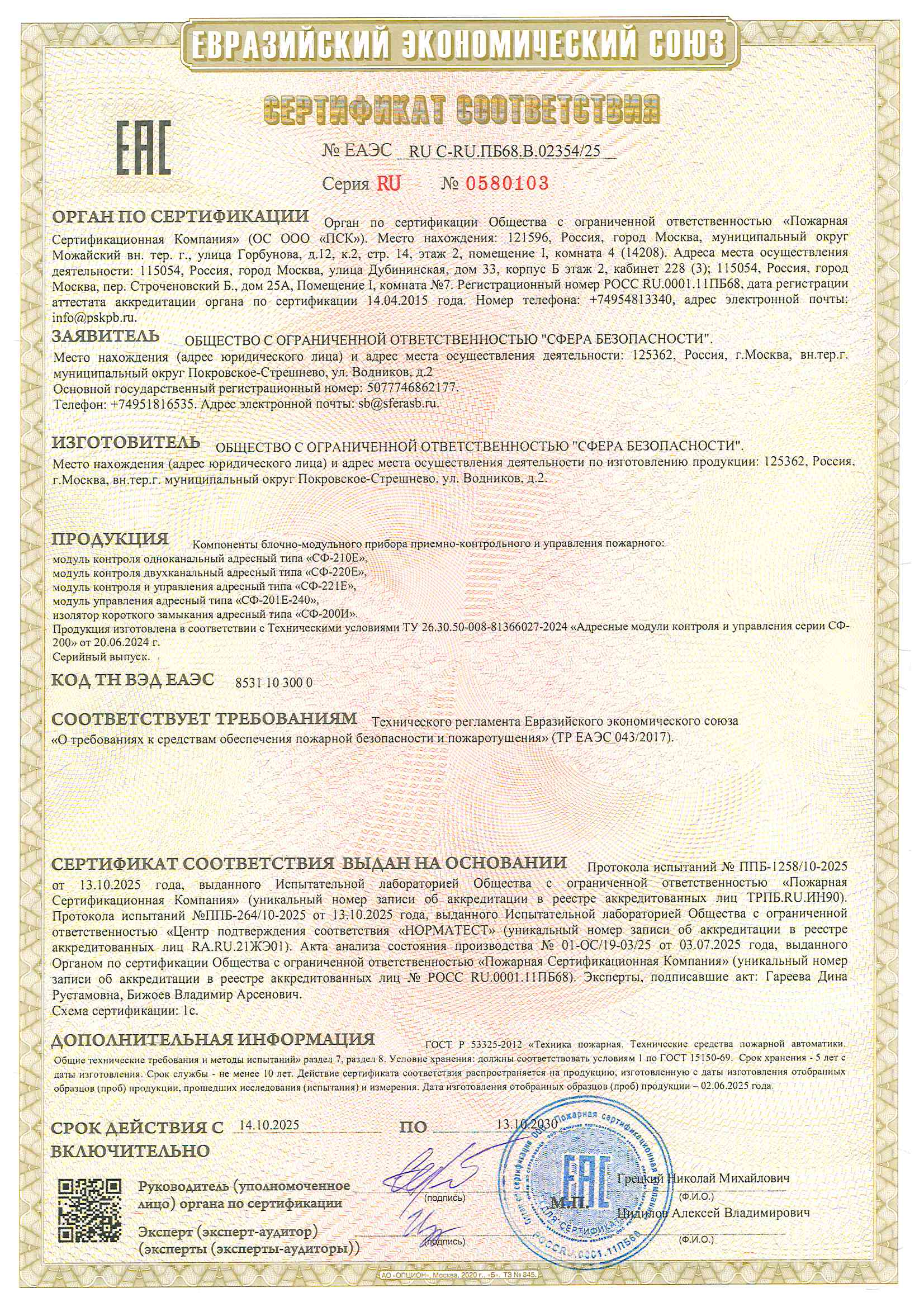Адресный модуль СФ-220Е произведен ООО "Сфера Безопасности" и имеет OEM-код ID63.
